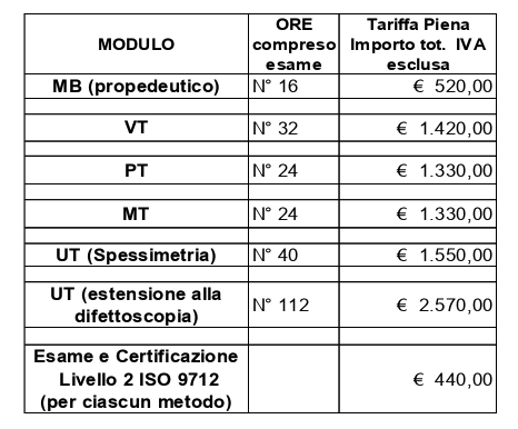 - PREZZI CORSO DI FORMAZIONE, ESAME E CERTIFICAZIONE UNI EN ISO 9712 LIV.2